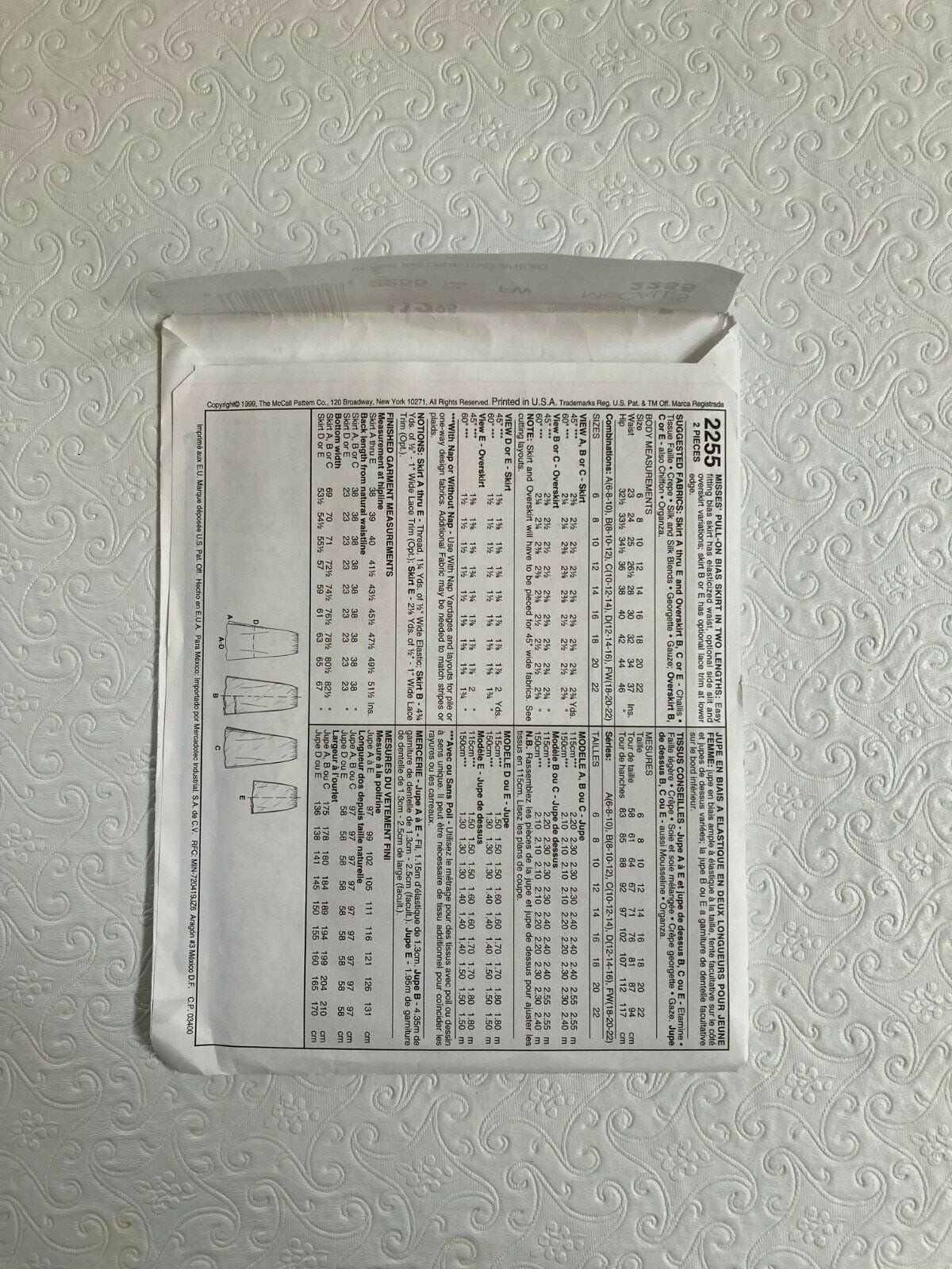 Mccall S 2255 Pull On Bias Skirt In Two Lengths Size B 8 10 12 Used Sewing Pattern